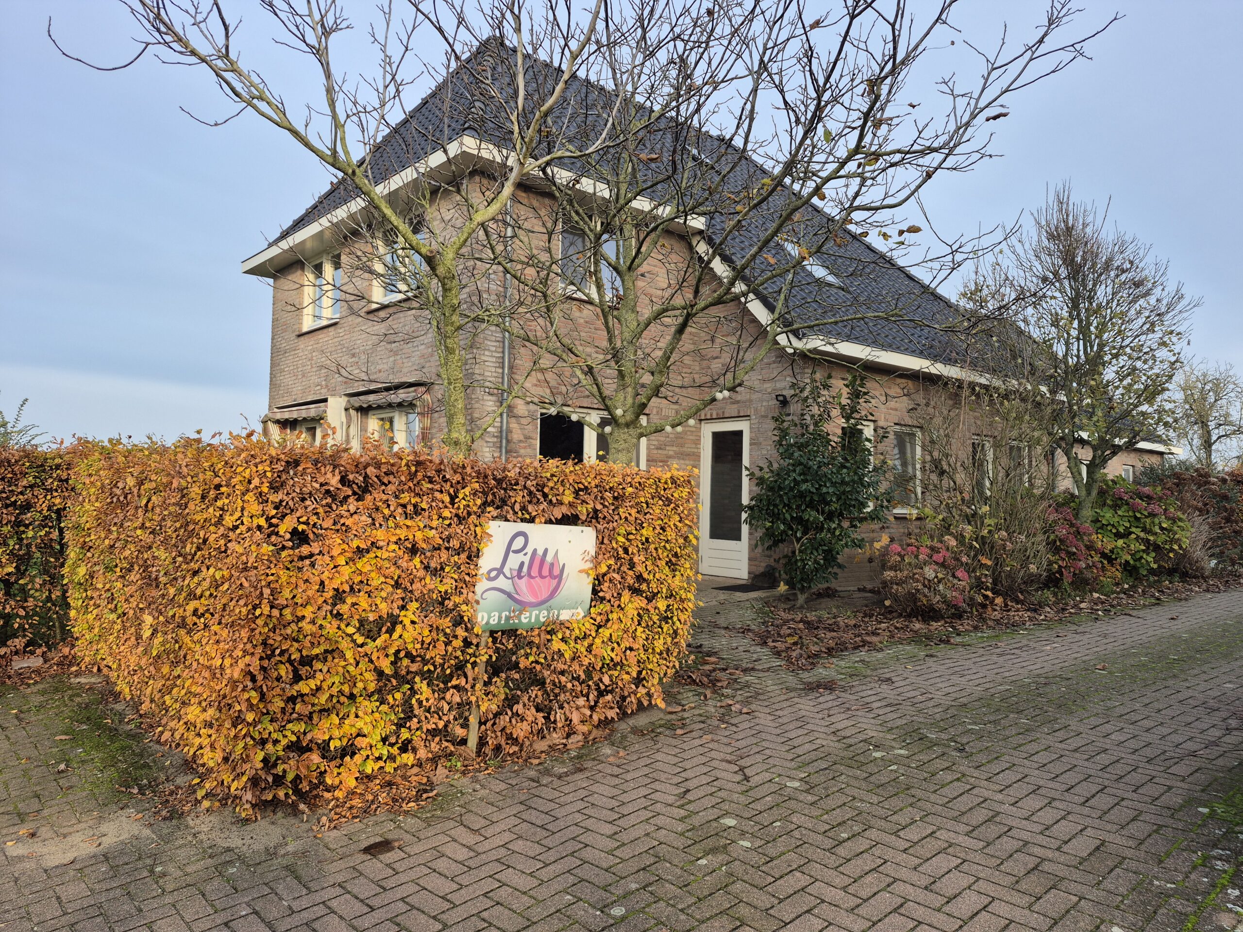 Als je de Eindstraat in rijdt, ga je eerst naar links. Bijna aan het einde van de straat zie je een woonhuis met in de heg een bord: Biodanzasalon.